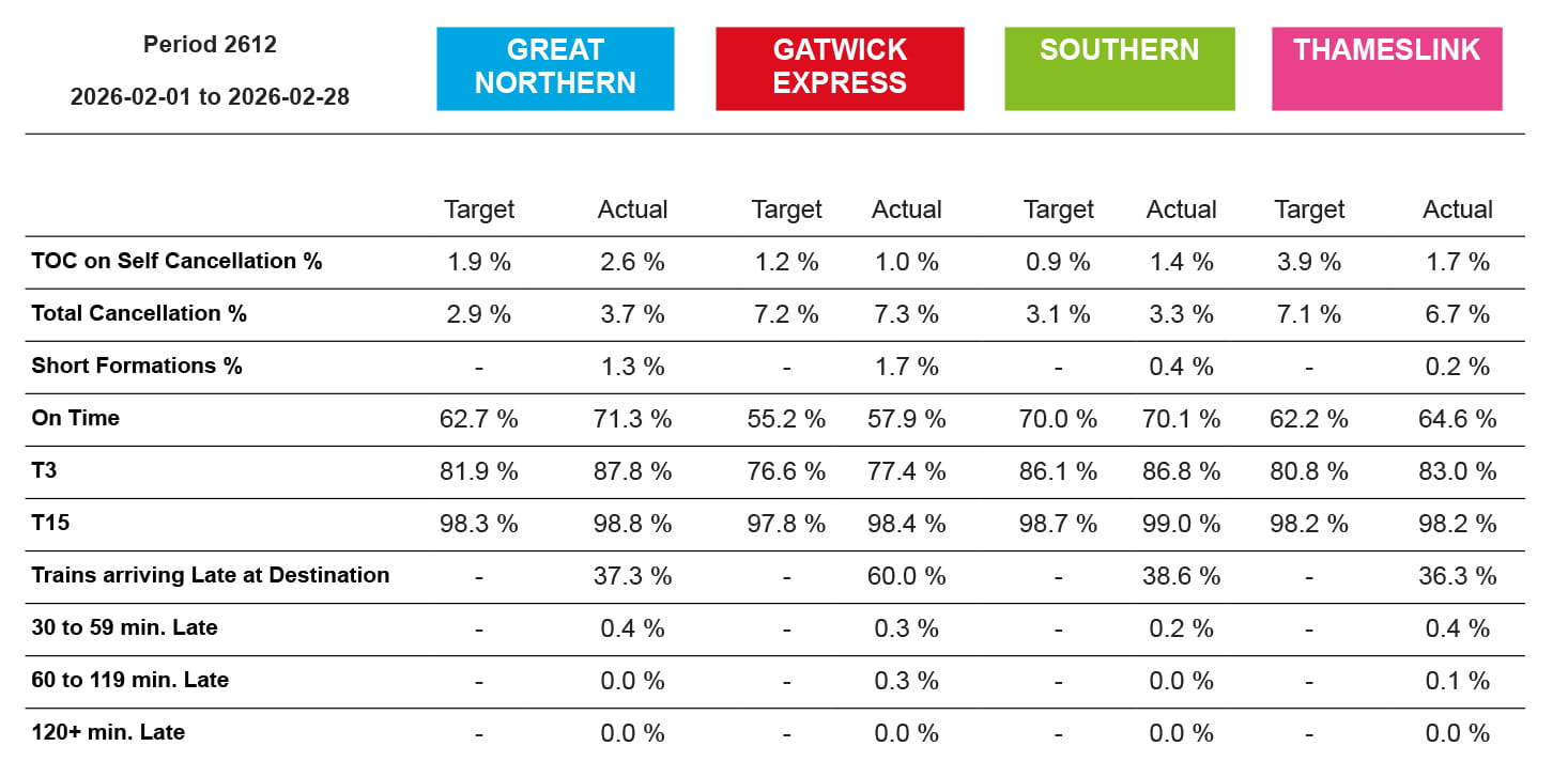 - PPM – the percentage of trains arriving at their destination within 5 minutes of schedule
